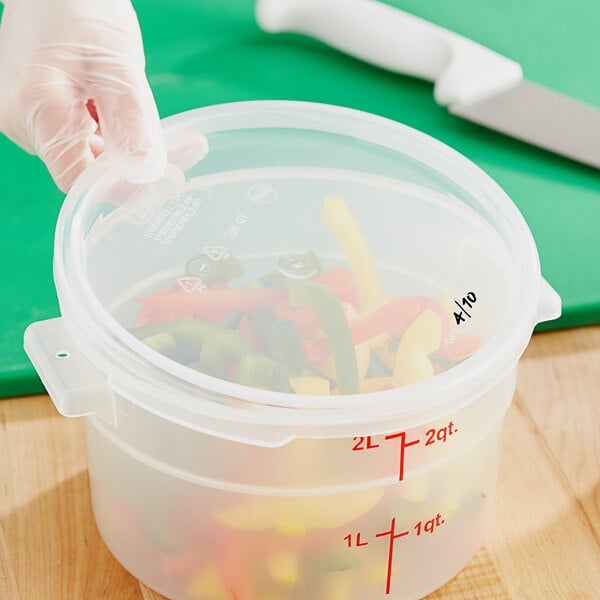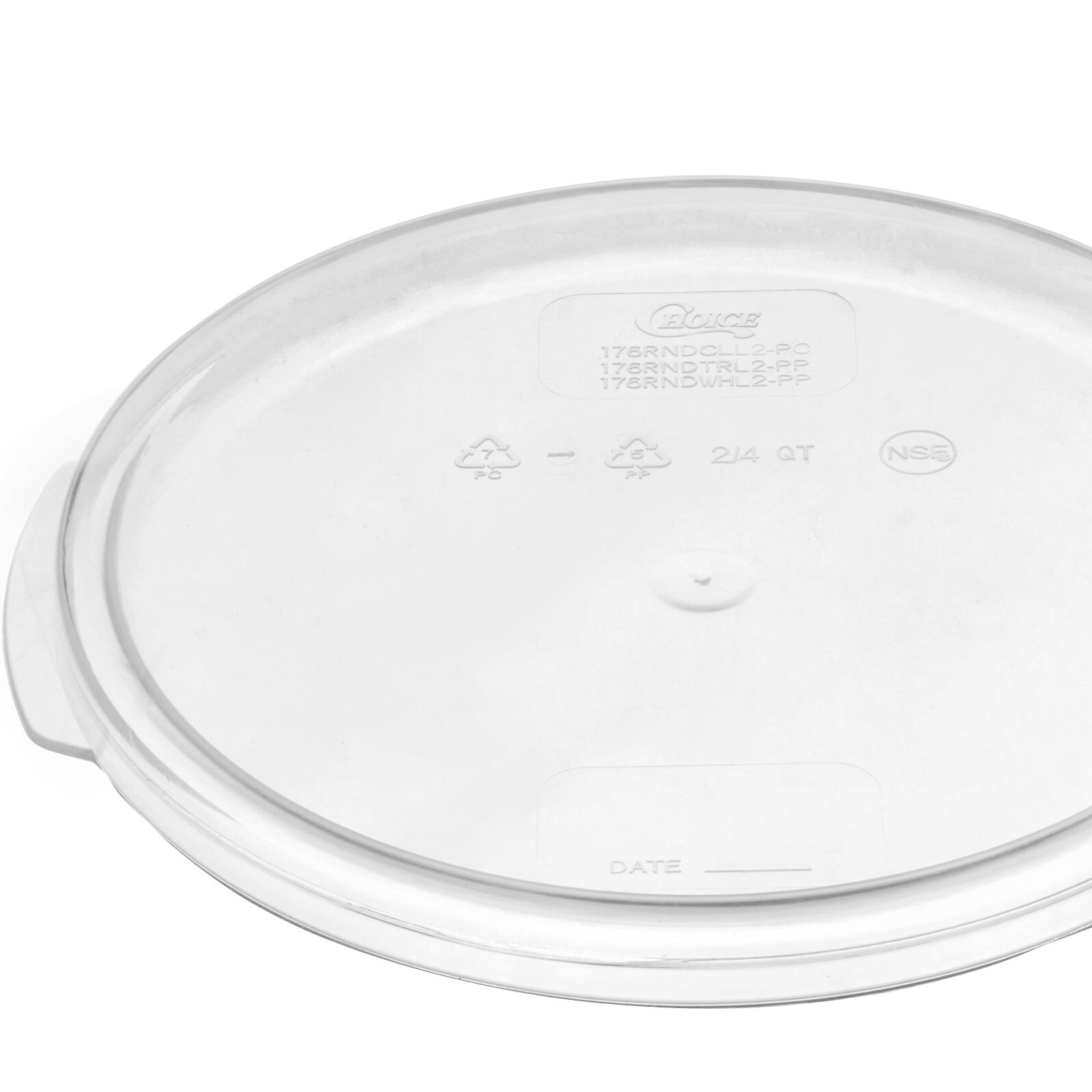 Designed specifically to work with a Choice 2 or 4 qt. round food storage container, use this lid to cover freshly chopped fruit salad, sliced vegetables, soup stock, or stew! Plus, it helps prevent outside contaminants from getting in. Whether you're a chef, caterer, or cafe owner, this 2 and 4 qt. food container lid is the best choice for your business.