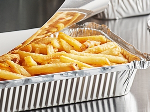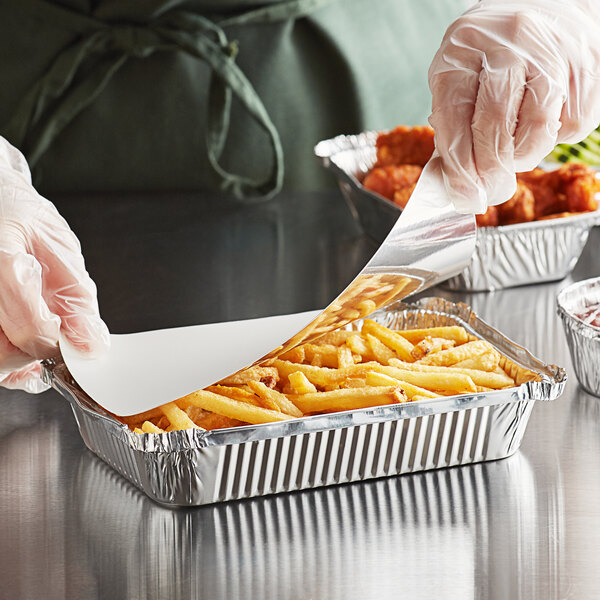 This Container is made out of very, VERY thin aluminum, not much thicker than aluminum foil, to be honest. It barely holds it's shape and cutting anything in it is not an option, even with a spatula. I'm embarrassed that my customers have to put up with this for now. So I will not be reordering this product again. Oh and forget stacking once filled. They will cave in on each other.