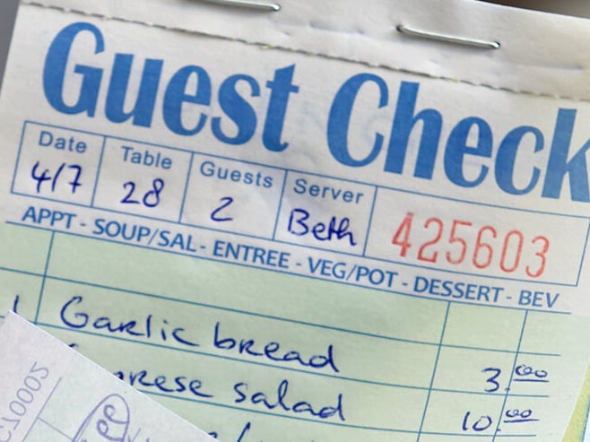 Fields at the top of each sheet allow your staff to record the date, the table number, the number of guests, and the server.