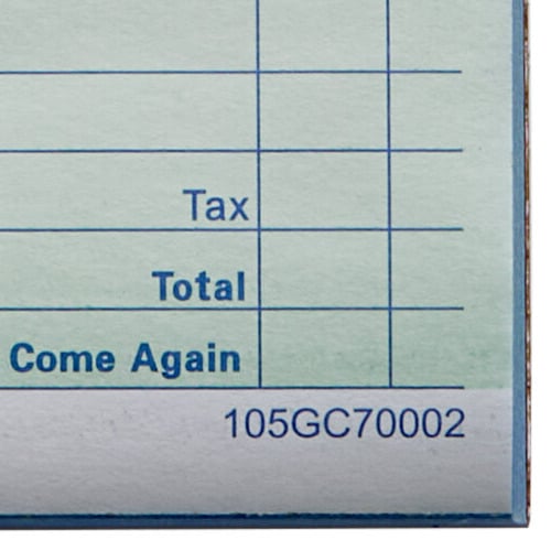 Featuring a green print on crisp, white paper for easy readability, this Choice 2 part guest check will help to increase productivity in your restaurant or diner! It gives your staff the tools that are necessary for them to collect and bill orders quickly and accurately. Plus, since each sheet is bound into a pad of 50, you’ll never have to worry about loose sheets or mixed up orders, again.