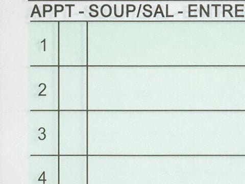 Fields at the top of each sheet allow your staff to record the date, the table number, the number of guests, and the server.