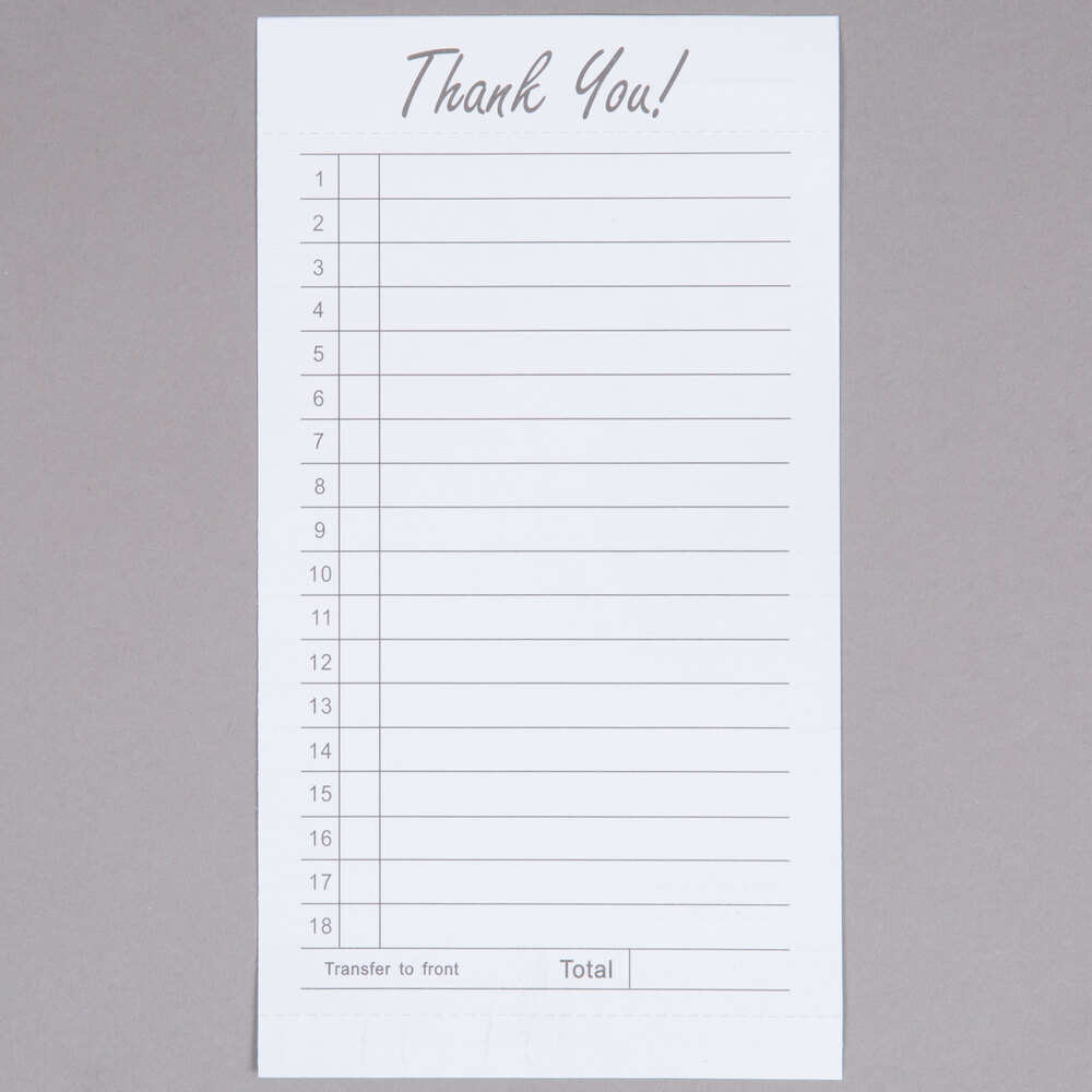 The back of this guest check features a multitude of columns and numbered lines for your choice of line items.