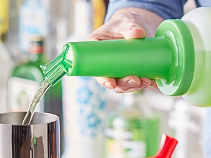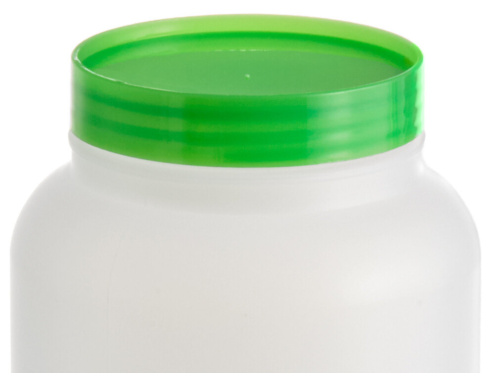 The translucent 2 qt. container is made of high density polyethylene with straight walls that won't harbor bacteria, and a ridge that accepts the cap while not in use so it doesn't get lost.