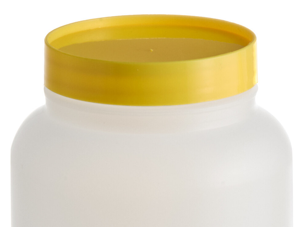 The translucent 2 qt. container is made of high density polyethylene with straight walls that won't harbor bacteria, and a ridge that accepts the cap while not in use so it doesn't get lost.