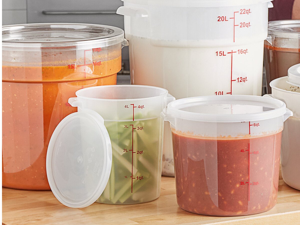Whether storing dry goods or prepped ingredients, this container is versatile and can handle temperatures ranging from -40 to 160 degrees Fahrenheit, making it ideal for a wide range of kitchen tasks. This Choice translucent round polypropylene food storage container with lid is perfect for restaurants, catering establishments, delis, and cafes that want to enhance their service and streamline their prep organization!