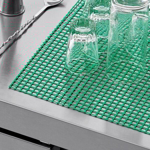 To aid in faster and more sanitary drying of your glassware, this shelf liner is designed in a breathable mesh, diamond-shaped pattern. It helps to create a barrier between the shelving and glassware, which discourages bacteria growth.