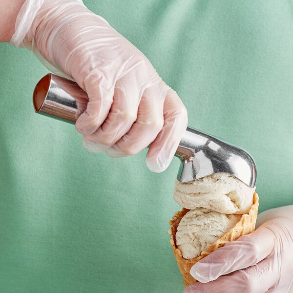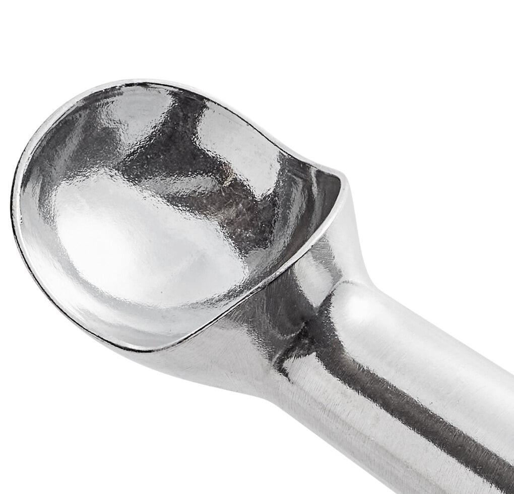 Designed for scooping hard ice cream, this scoop features a durable 1-piece cast aluminum construction and the handle contains non-toxic defrosting fluid that enables easier and faster dipping. Plus, the defrosting handle helps prevent ice crystals from forming on the scoop in between uses.