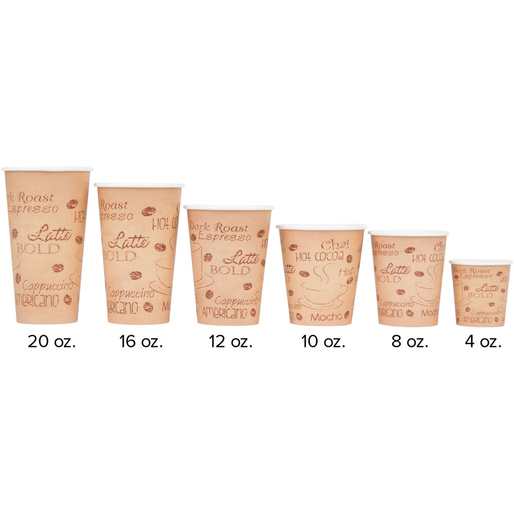 Both versatile and economical, this Choice hot coffee cup is the perfect beverage solution for your cafe, coffee shop, kiosk, concession stand, or convenience store. It features an attractive cafe design that provides a colorful alternative to plain white paper cups, and has a space-saving construction, allowing it to be placed in a convenient cup dispenser for compact storage and easy accessibility.