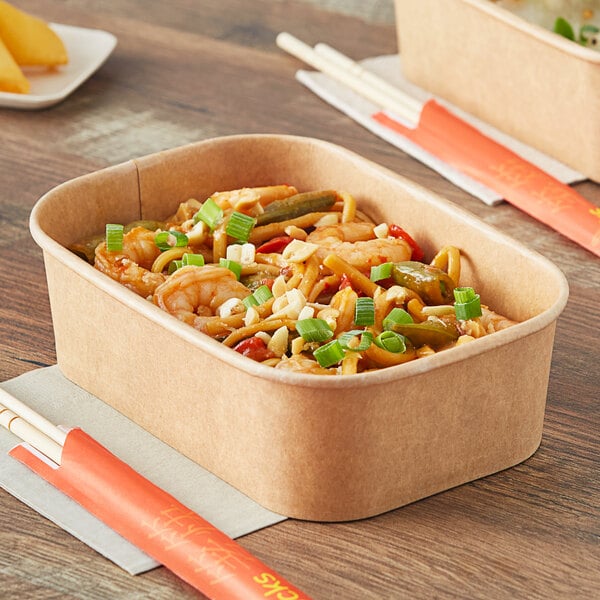 Send your delicious food home with guests in this Choice 20 oz. rectangular kraft PE-lined microwavable take-out container.