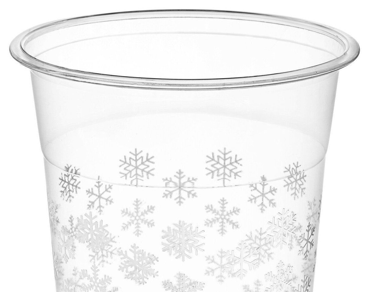The crystal-clear plastic construction combined with a fun, snowflake design gives this disposable drinkware an upscale appearance, while also providing excellent clarity. The increased product visibility and engaging seasonal design will help to boost impulse sales for all of your thirst-quenching beverages.