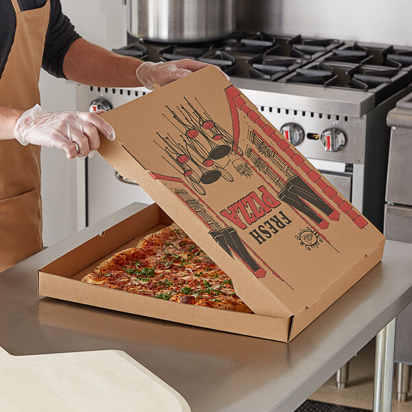 Made of B-flute cardboard spanning 1/8" in thickness, this kraft box has a durable design. Plus, this box is made of 100% recycled packaging, ensuring you maintain your pizzeria or Italian restaurant's dedication to preserving the environment.