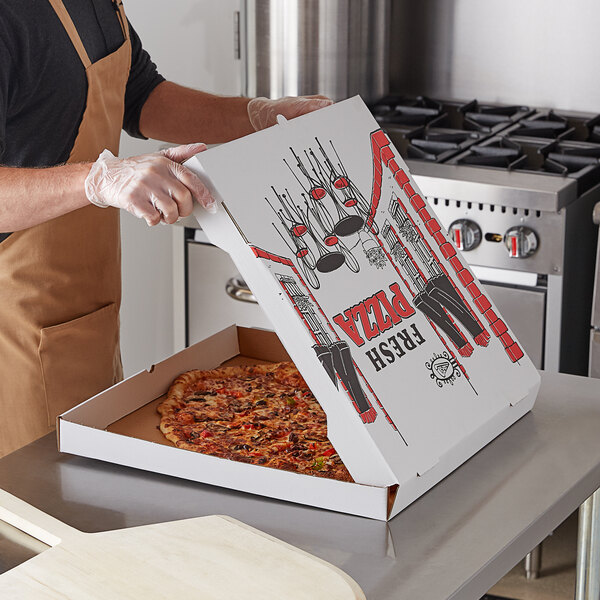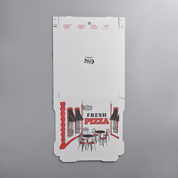 Once your guests have finished eating, this convenient box is recyclable for fast clean up. Plus, it features a convenient ingredient check list on the side, enabling you to mark each pizza's toppings for fast order identification at your pizza parlor, Italian restaurant, or convenience store.