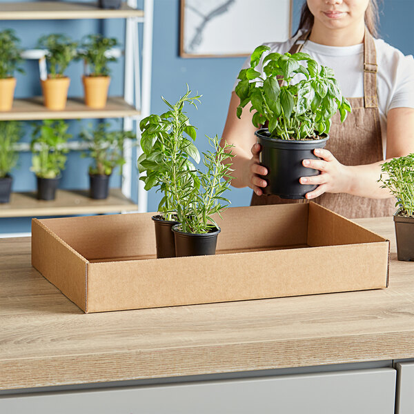 If you need a way to transport or pack products, this Choice kraft corrugated full greenhouse / market tray is perfect for the job. With a sturdy cardboard construction, this tray is suitable for transporting plants, greenhouse supplies, and farmers' market orders.