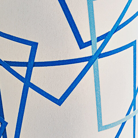 Draw customers in with the bold graphics found on this poly paper cold cup! Featuring a fun, blue cubed design in varying shades of blue against the stark white background, this cup is sure to become and eye-catching addition to your establishment.