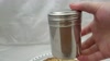 This is a quality handleless shaker. It feels sturdy enough that you won't crush it while cleaning it. It is shiny and reflective, giving it a nice appearance. It may be hard to keep clean, especially with fingerprints, but it's definitely worth the price. The holes are a bit big, so cinnamon does come out real quick, but that's easy to get used to after a couple of times using it. I would definitely recommend this one over the aluminum one.