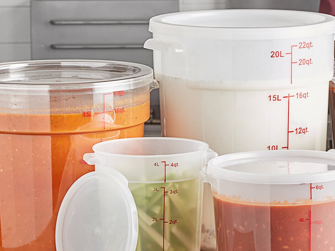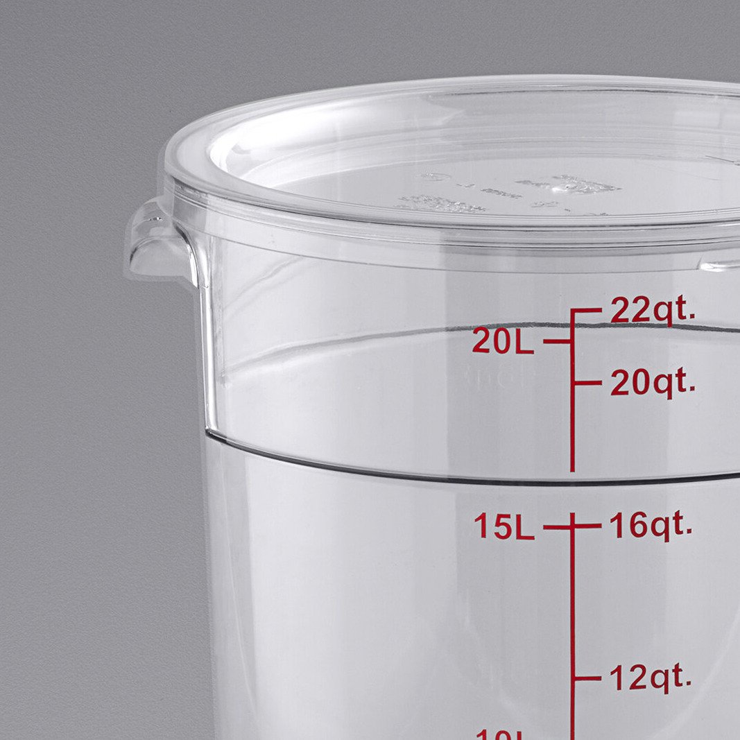 Bold red graduations are printed on the side of the container in both quarts and liters for easy, immediate measuring, saving you time and effort during food preparation. Easily identify and track the date that your food product was made using the reusable "date" indicator at the bottom of the container, or simply adhere a label (sold separately) to the side.
