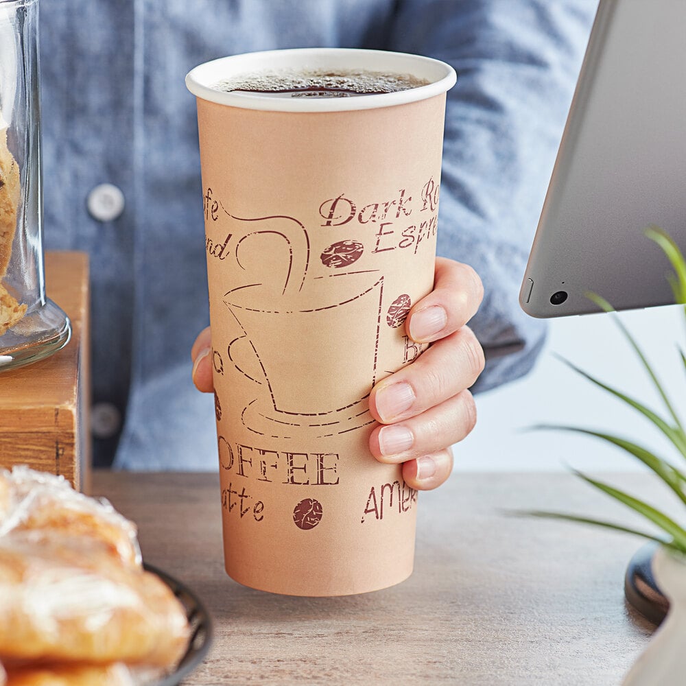 Choice 24 oz. Cafe Print Poly Paper Hot Cup - 50/Pack