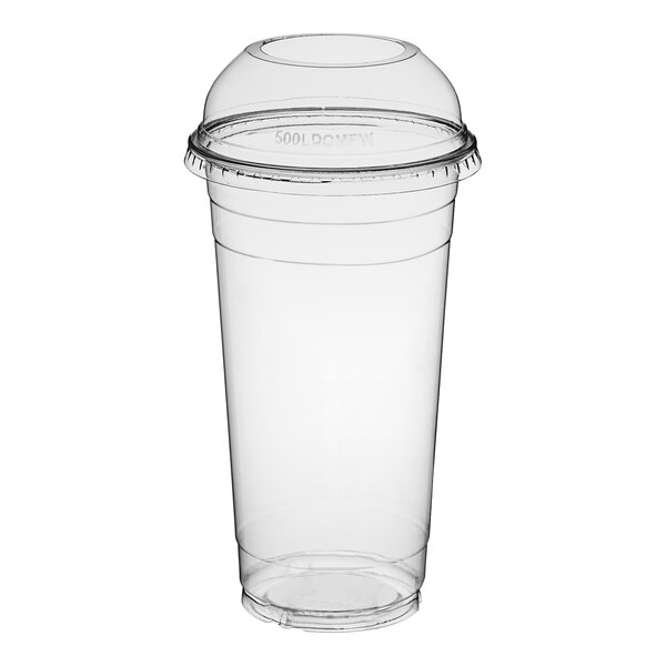 The included lid features a convenient dome shape that creates a greater capacity for a wide variety of beverages from iced coffees to sweet drinks with whipped toppings. The clear lid creates a tight seal, keeping contents fresh and preventing spills and leaks. Its 2" hole accommodates a variety of spoons or straws for easy sipping.