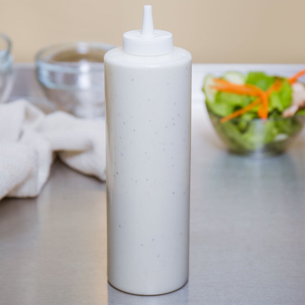 This bottle's versatile, simple design is ideal for both back-of-house and front-of-house applications. Serve a variety of condiments including ketchup, barbecue sauce, Buffalo sauce, or even olive oil and salad dressings. Use it for quick visualization to help cut down on errors and reduce miscommunication in fast paced establishments. Whether you're using it in your kitchen to complete your culinary creations or placing it in a self-serve area for guests to use, this Choice squeeze bottle will make adding condiments to items a breeze.