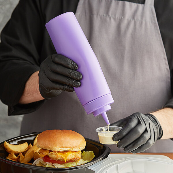 Finish off your signature burger or fried fish sandwich with this Choice 24 oz. purple wide mouth squeeze bottle.