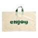 Streamline your takeout service with this Choice 24" x 11" x 14" standard-duty beige "enjoy" plastic soft loop handle bag! This beige bag features a stylish green "enjoy" print that adds a memorable touch to your customers' carryout experience. The design of the bag includes integrated soft loop handles and a flat bottom, making it the perfect solution for bagging orders on the go. With the ability to hold half size pans, this bag is ideal for accommodating catering orders, half size pans, and other large food orders.