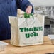 - Beige bag with green "thank you" print
