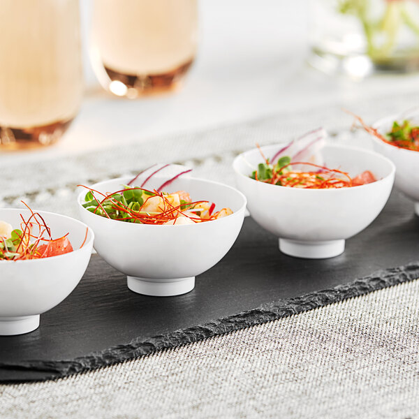 The capacity is ideal for single portion servings and samples. The single-serve construction lets guests easily grab and go with a serving, providing a sanitary eating experience for any venue. Once your guests are done using it, they can simply dispose of it without the worry of washing or storing it! It is the perfect addition to your event or business to add class and convenience!