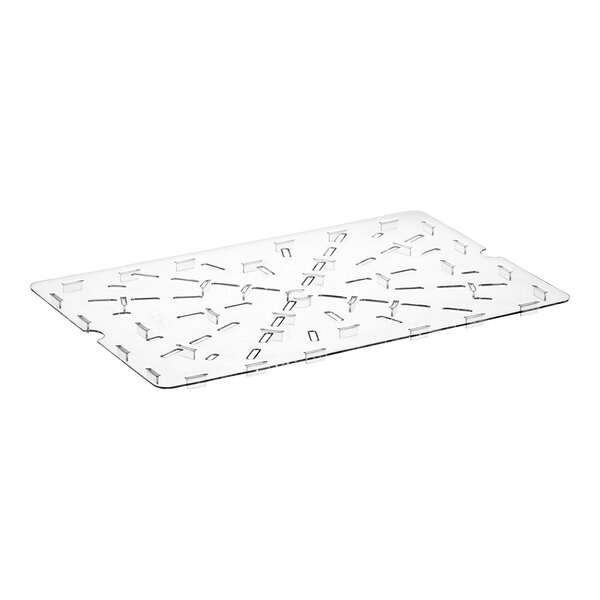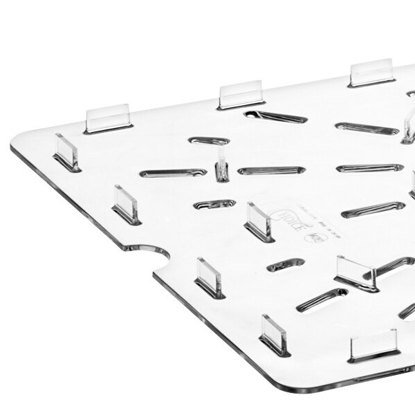 This versatile piece is perfect for various tasks such as thawing meats or storing fruits, vegetables, or seafood. The drain notches in the tray allow liquids to quickly separate from food items, while the built-in feet keep the tray elevated and removed from the drained liquid. Designed with convenience in mind, the molded rim fits seamlessly within compatible food storage boxes (sold separately), ensuring a secure fit and preventing spills or leaks.