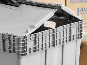 When it comes time to lift the box, you can count on the ergonomic integrated handles for easy lifting. Its convenient interlocking hinged lid keeps the box tightly sealed and stable during transport.