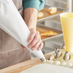 Made of canvas and coated with plastic, this pastry bag is easy to grip and offers a leak-proof option for piping icing, mashed potatoes, and dough. Plus, thanks to its smooth interior lining, this bag is ideal for use with oily products and regular icings.