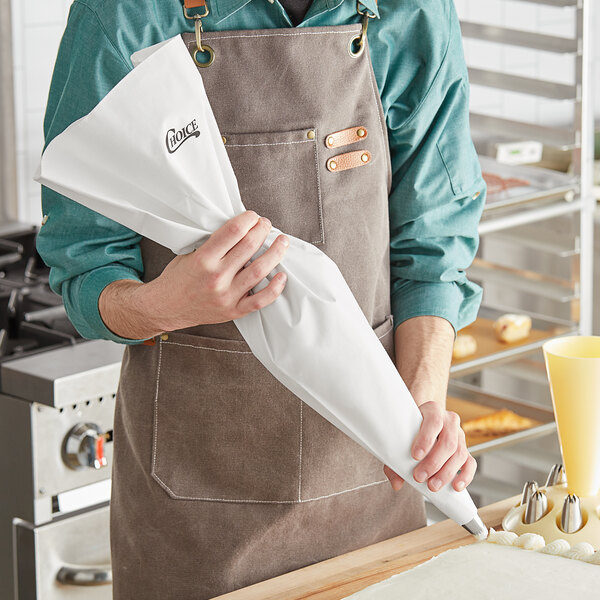 This Choice 28" plastic coated canvas reusable pastry bag is designed for baking professionals for heavy-duty, extended use, and is perfect for creating imaginative cupcakes, cakes, and food displays. This bag will allow you to decorate confectionary delights for extended periods of time comfortably; whether you're decorating at a commercial bakery or for a catered event, this bag is a great option for your establishment!