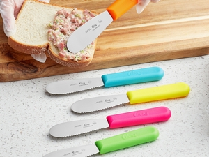 - Item #: 220sprdsnen3Choice 3 1/2" 5-Piece Smooth Polypropylene Sandwich Spreader Set with Neon Handle