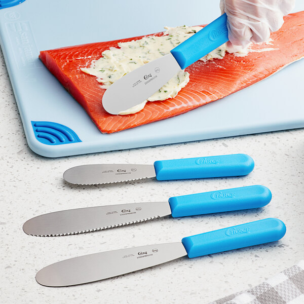 Featuring a versatile blue color, this spreader is an ideal addition to your color-coded kitchen operation and can be especially designated for certain condiments or spreads based on its color.