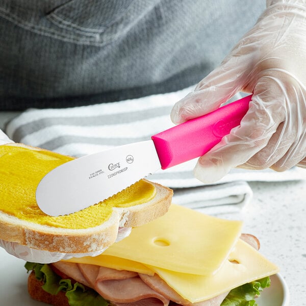 Featuring a bold neon pink color, this spreader is an ideal addition to your color-coded kitchen operation and can be especially designated for certain condiments or spreads based on its color.