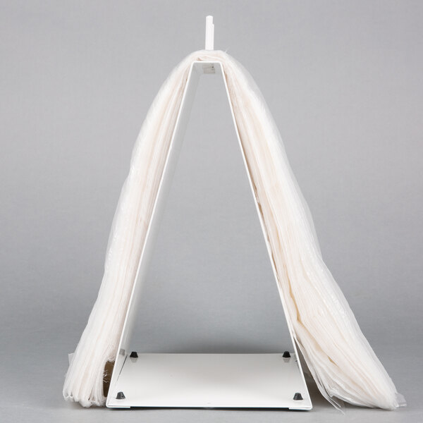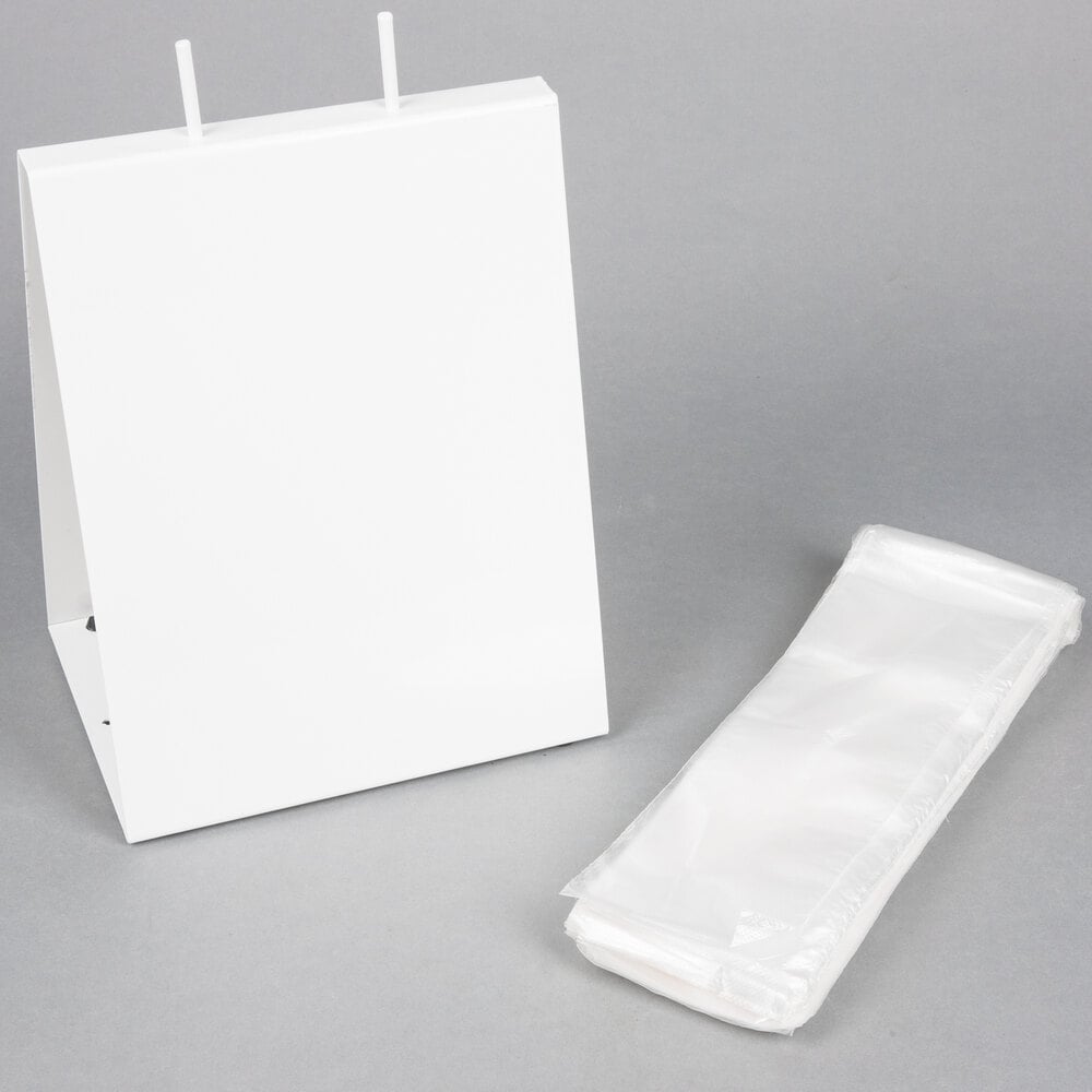 A must-have for any deli, market, or bakery, this Choice 8" x 12" deli saddle bag stand with plain 3 1/2" x 10" deli bags makes it easier than ever before to wrap and deliver your signature products. By pairing the stand with versatile flip top bags, users can quickly portion out desired foods for individual guests or simply prepare various candies, cheeses, and baked goods for re-sale.