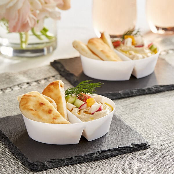 Visions 3 3/4" White Plastic Mini Dual Compartment Dish - 10/Pack