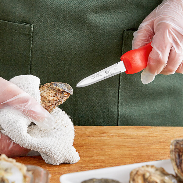 Regardless of your technique or familiarity with oyster shucking, this knife is the perfect tool for beginners and experts alike! It boasts a professional-grade blade that's long and narrow for great leverage and a comfortable, hourglass-shaped handle for a secure grip. Offering superior strength and function, this Choice 3" Boston style oyster knife is sure to become an essential tool at any seafood venue.