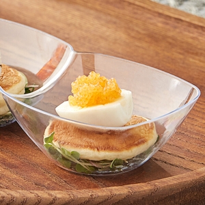Amaze guests with your tabletop presentation with the Visions 3-compartment clear plastic mini tray!
