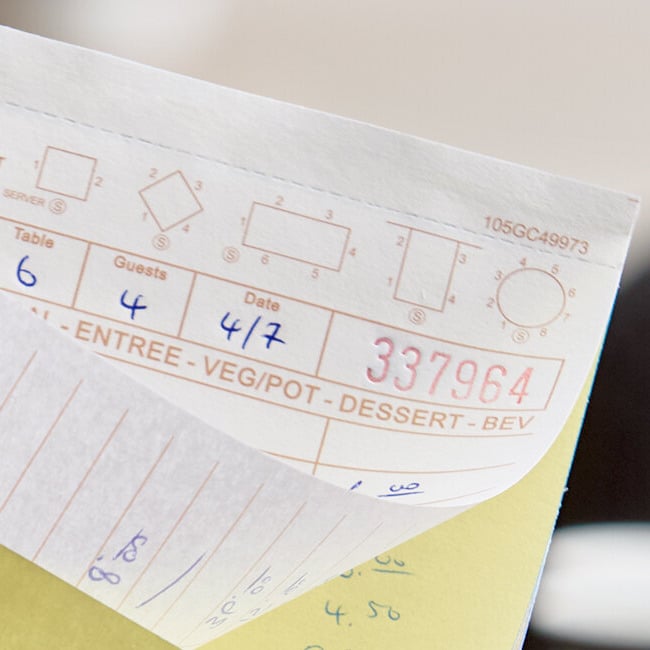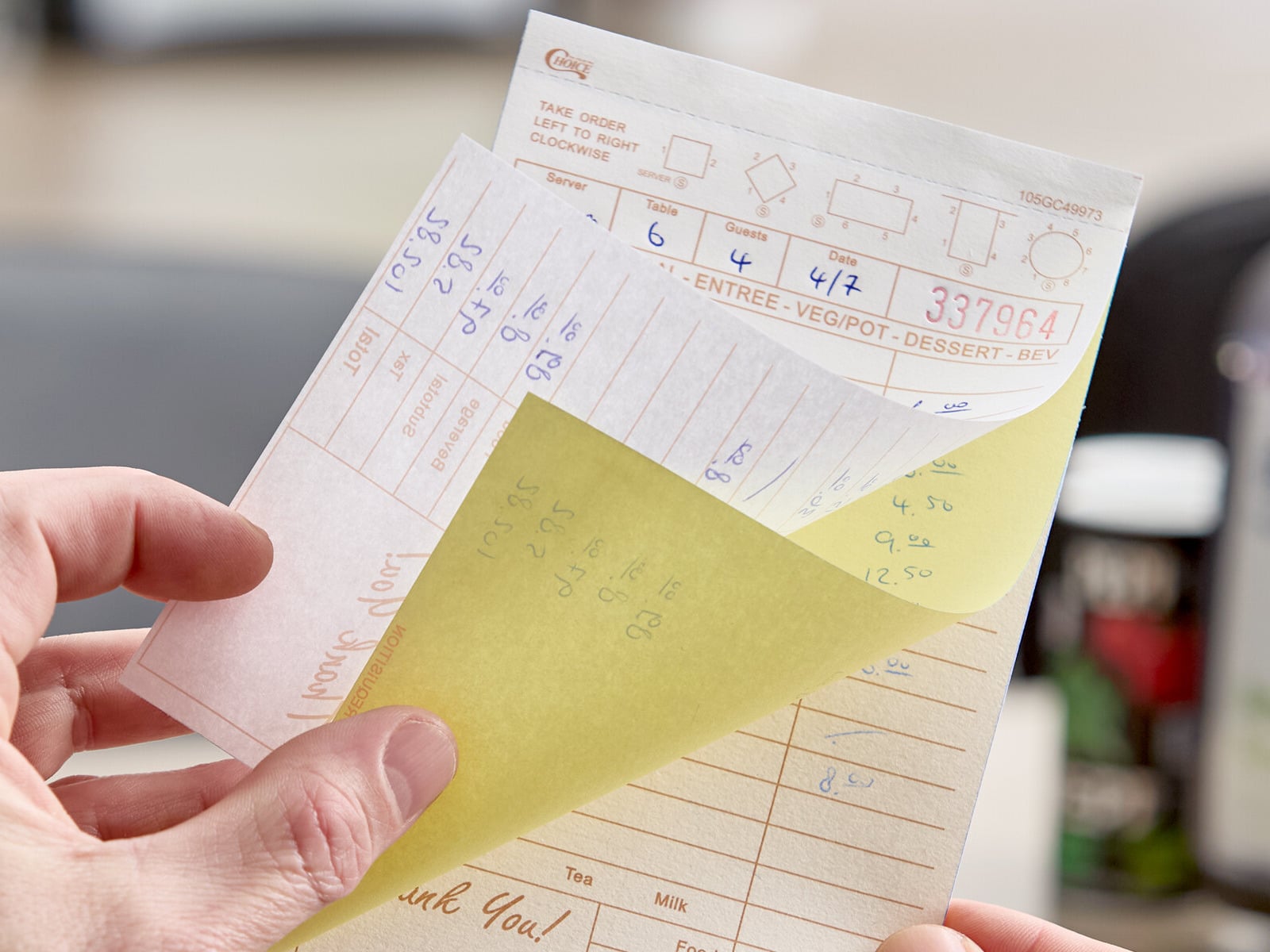I ordered these by mistake thinking they were the same as the other 3 part checks I had previously ordered. In general they look the same, but when hanging on the ticket rail in the kitchen the heat tends to curl the bottoms of the slips. It makes it super difficult to read large orders. We used the remainder if the box, but I made certain to order the other ones next time.