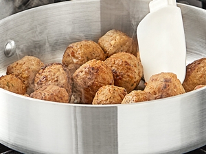 This saute pan boasts an aluminum composition that provides superior heat distribution, thus eliminating hot spots and making sure your dishes are cooked perfectly each time! Reach for this dependable saute pan the next time you're shallow-frying meatballs or chicken thighs, and your guests are sure to taste the difference.