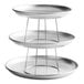 This seafood tower set comes with everything you need for an elegant arrangement, including a 15 3/4" tray, a 17 3/4" tray, a 19 3/4" tray, and (2) 7 1/2" x 7 3/8" stainless steel stands. Each tray features a durable 13 gauge, 1.8 mm aluminum construction that's designed to not only provide a high quality appearance to catered events or buffets, but also helps maintain cold temperatures to keep your seafood staying fresh. At the same time, the neutral color of the trays helps to highlight the seafood on them.