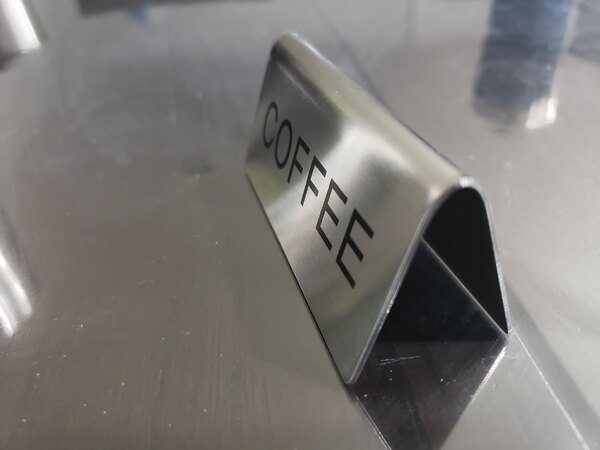 The compact design and size make the sign easy to display and store without taking up too much space, while the smooth finish is easy to clean with a simple wipe down. Alert your guests of your different coffee options with this stainless steel sign!