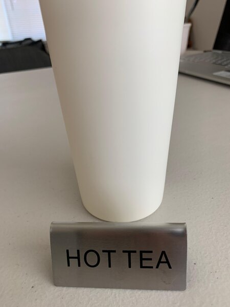 Use this "Hot Tea" table tent sign to help label popular beverages at your beverage station! Thanks to the double-sided printing, the message can be viewed by guests no matter where they are standing or sitting.