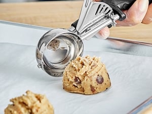 The scoop works decent bit only lasted 6 months then broke in the middle of scooping soft cookie dough. If you use a dishwasher the bottom collects water. You have to pull it apart and dump the water out. The water also collects in the area between the handle and the stainless steel and drips out when being used. I will not be purchasing these again.