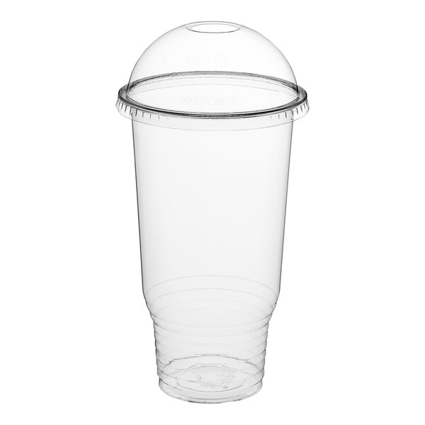 The included clear plastic dome lid provides a secure and tight fit. It also features a straw hole, reducing the chance of spillage. A crystal-clear plastic construction gives the lid a pristine appearance, while also providing excellent clarity. The dome shape allows greater capacity for the thirst-quenching contents, and the wide hole makes it possible to insert small mixing devices directly into the cup.