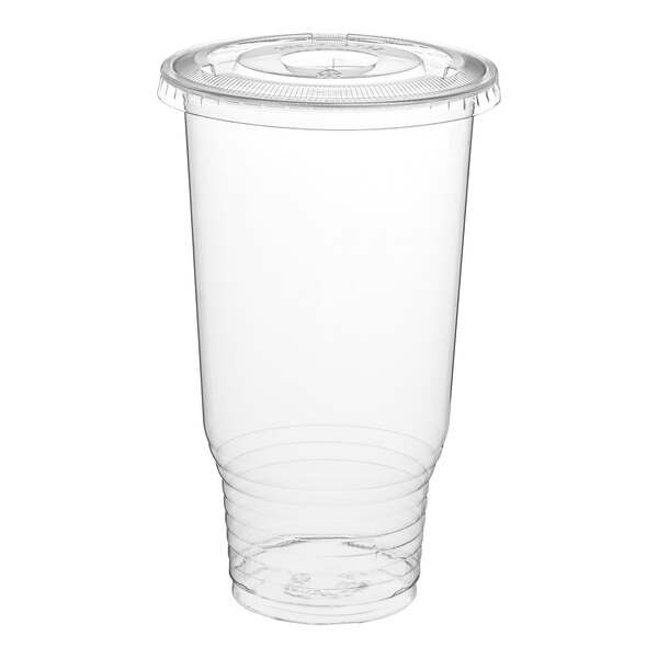 The included lid features a tight-fitting design, which helps to reduce spills, and the straw slot ensures easy sipping. Made with PET plastic, this lid ensures quality, single-service use and has a crystal-clear construction for fast product identification. Not only does it completely cover the contents of each cup for protection from airborne contaminants, it is also conveniently recyclable.