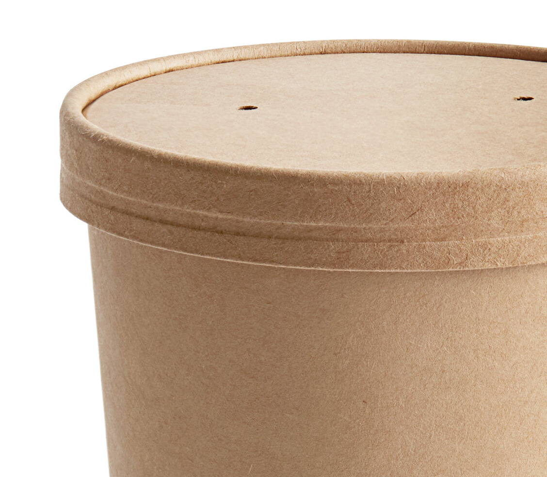 This Choice 32 oz. kraft poly-coated paper food cup with vented lid provides a great presentation for your take-out food items!