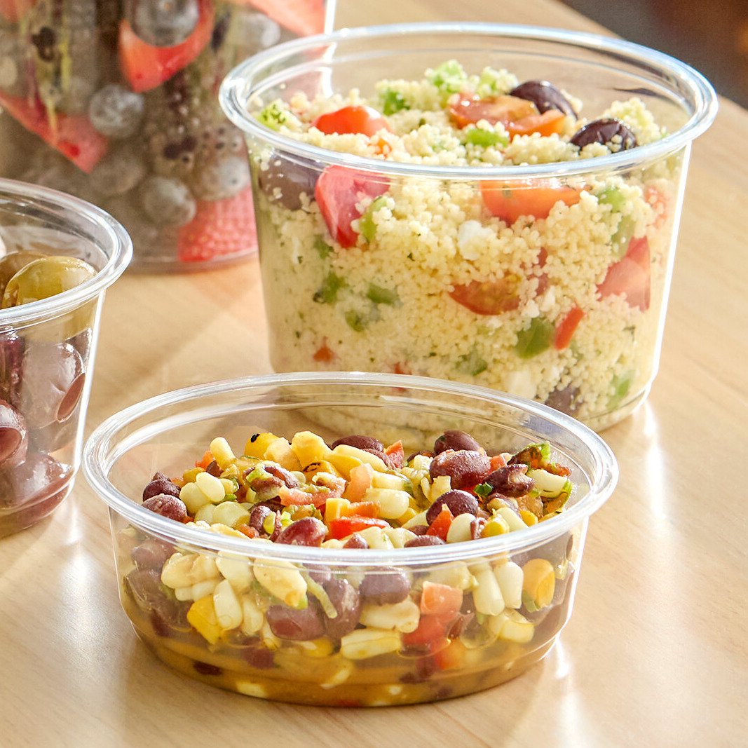When customers can't get enough of your pasta salads, fruit salads, or puddings, let them take it home in this clear deli container! Great for delis, salad bars, or restaurant take-out applications, this container is designed for transporting and storing cold food items. Your customers will appreciate being served a sturdy container that won't leak and will keep their leftovers or deli purchases secure during the ride home. When paired with a compatible lid (sold separately), this container is air-tight and spill-proof. The classic round shape holds up to 32 oz. of your most popular cold foods.