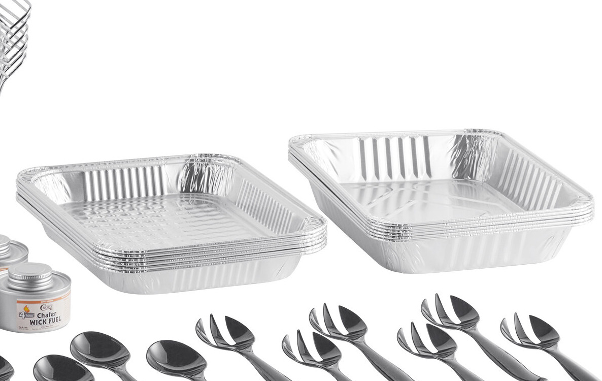 Are you searching for an inexpensive alternative to conventional chafers for your indoor or outdoor catered events? This Choice kit is sure to be a reliable solution! It comes with (6) 1/2 size, sturdy wire stands, featuring a versatile chrome color that will shine atop your buffet or serving station and offer you unmatched versatility. This kit is perfect for indoor or outdoor food gatherings of varying sizes. It even includes serving utensils for added convenience. Use this chafer kit at your BBQ, wedding, anniversary, or corporate get-together!