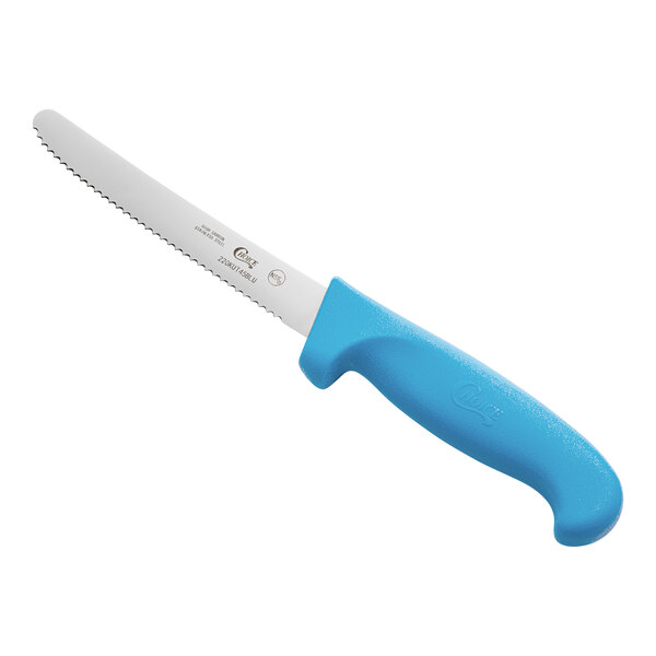 Choice 4 1/2" Serrated Edge Utility / Bar Knife with Blue Handle